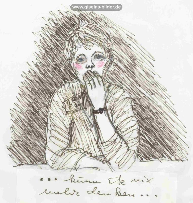 Sie will nicht kneifen. Eine Hand vorm Mund, mit der anderen TOSCA auf den Lehrerrücken, dann flink zum Waschraum ...