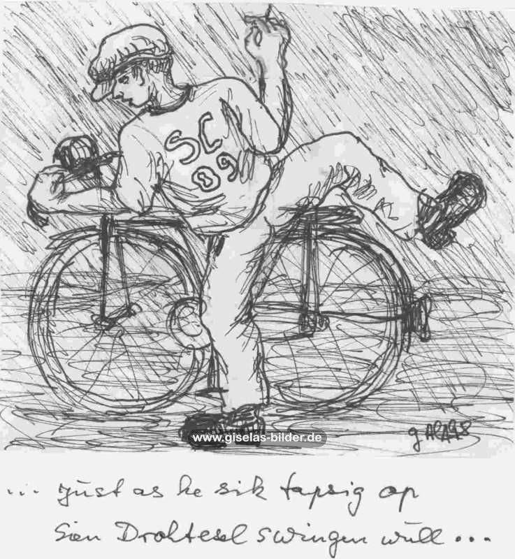 ... Just als er sich tapsig auf seinen Drahtesel schwingen will ...