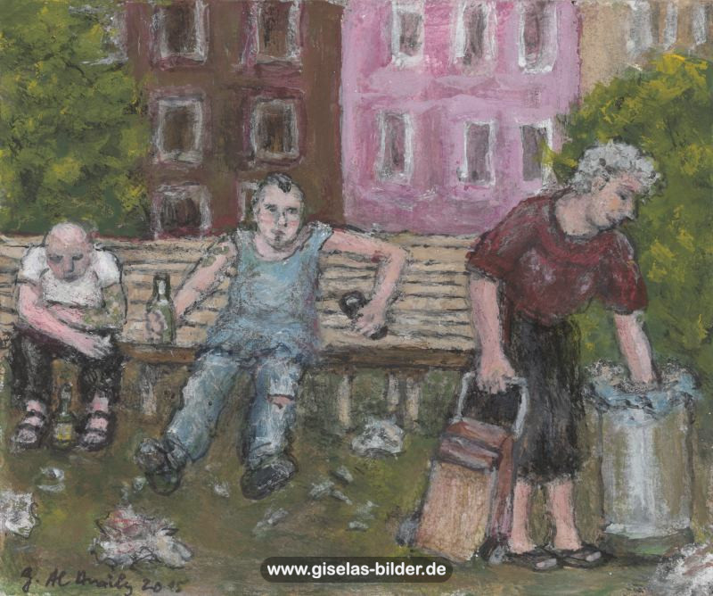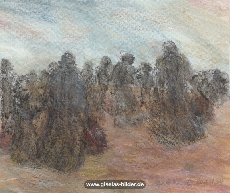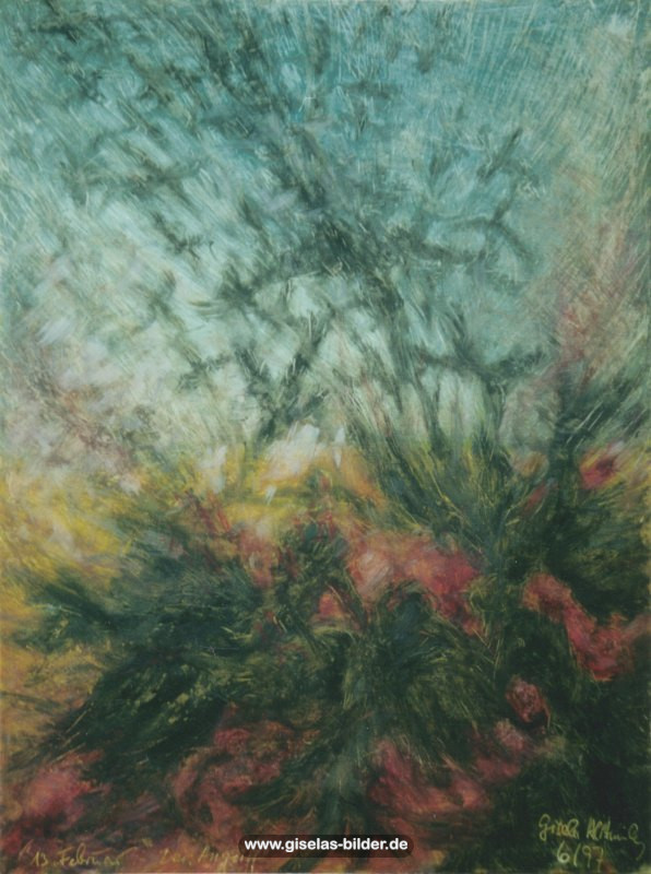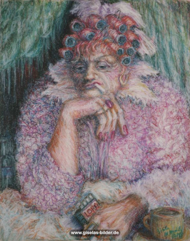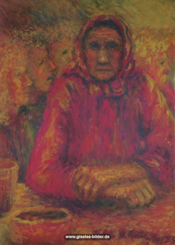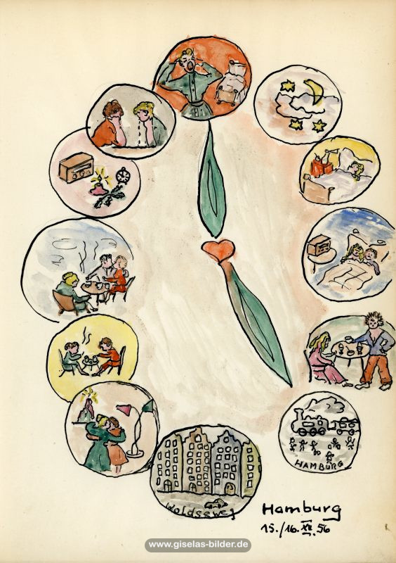 4) Die zweite Hamburger Periode: Dies ist die Periode vom 1. März 1995 bis 16. Dezember 2002, in der sie in einer kleinen 1,5-Zimmer-Mietwohnung in Hamburg-Fuhlsbüttel lebte, nachdem sie sich nach 32 Ehejahren von ihrem Mann getrennt hatte. Ab 1996 arbeitete sie sieben Jahre lang als Malgruppenleiterin, eine Arbeit, die ihr große Freude bereitete.