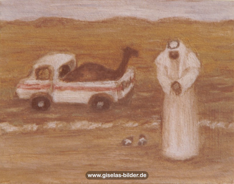 1982, in Riad, Saudi-Arabien, beginnt die Reise Gisela Al Amilys als ambitionierte Malerin. Dabei hätte ihre Lebensreise dort leicht enden können, da sich nur wenige Wochen nach der Ankunft herausstellte, dass sie schwer an Nierenkrebs erkrankt war. Nachdem ihre rechte Niere entfernt worden war, begann sie in der Erholungszeit aus der Fantasie kleine Bilder des arabischen Lebens zu malen, anfangs mit dem Schul-Tuschkasten ihres Sohnes.