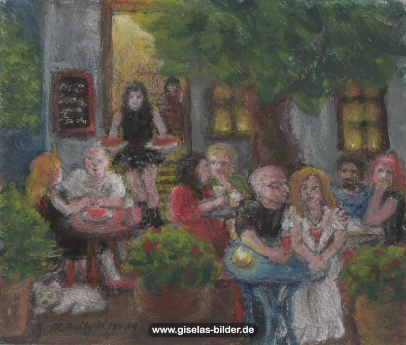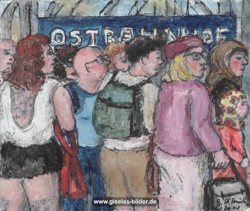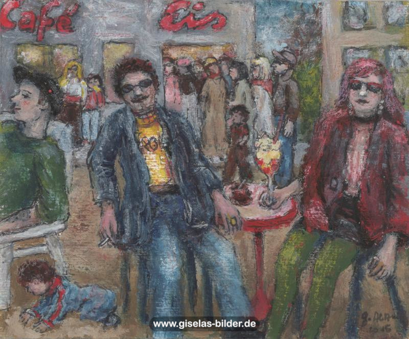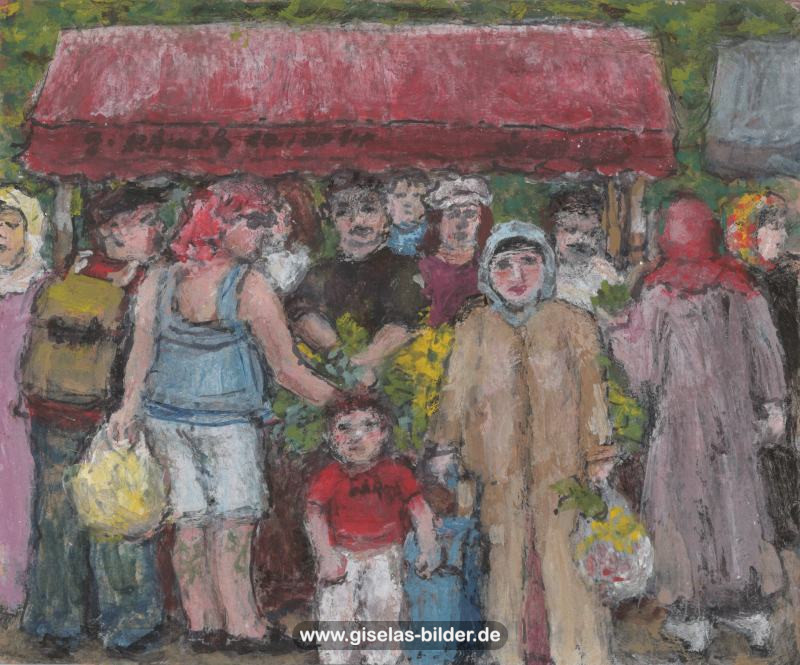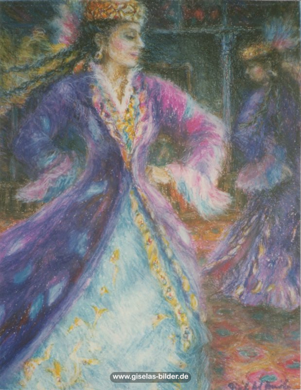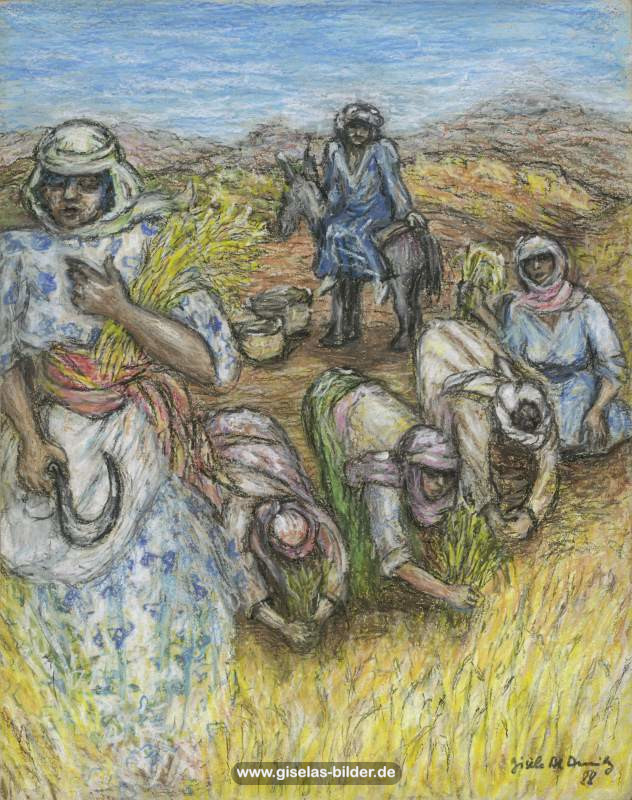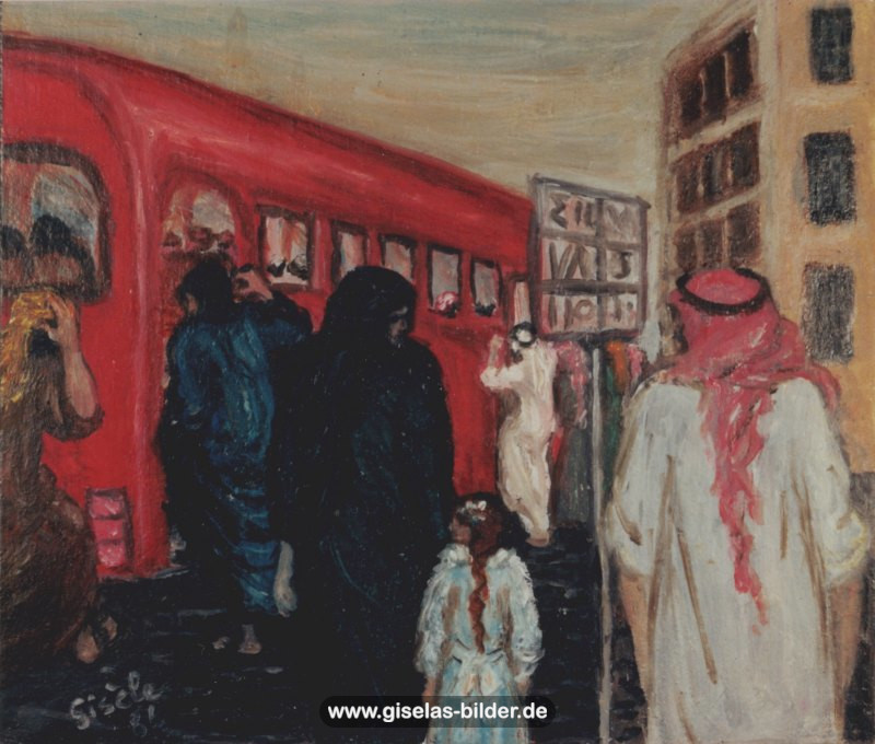 Zunächst malte sie weiterhin nur Szenen des arabischen Lebens, auch weil Freunde und Bekannte in Riad gerne noch ein Bild von ihr haben wollten. Ab 1988 malte sie kaum noch arabische Motive, sondern wandte sich anderen Themen zu. Die Bilder wurden zunehmend detailreicher, die Formate größer und die technische Ausführung raffinierter. Die erste Hamburger Schaffensperiode ist die produktivste der Malerin. Kurz vor ihrem Ende, etwa ab November 1994 legte sie den Künstlernamen "Gisèle" ab und signierte nur noch mit ihrem richtigen Namen. Eine Auswahl von Werken aus dieser Periode sehen Sie im folgenden Abschnitt.