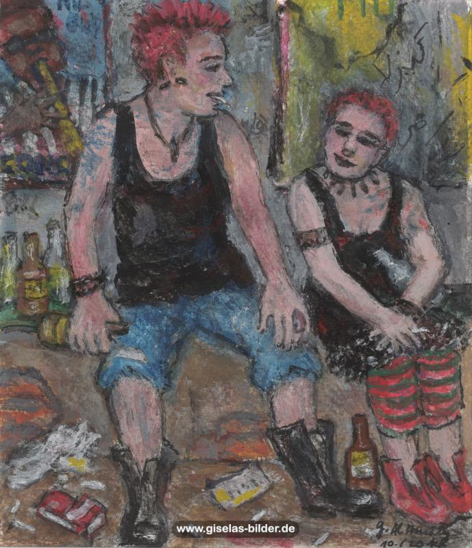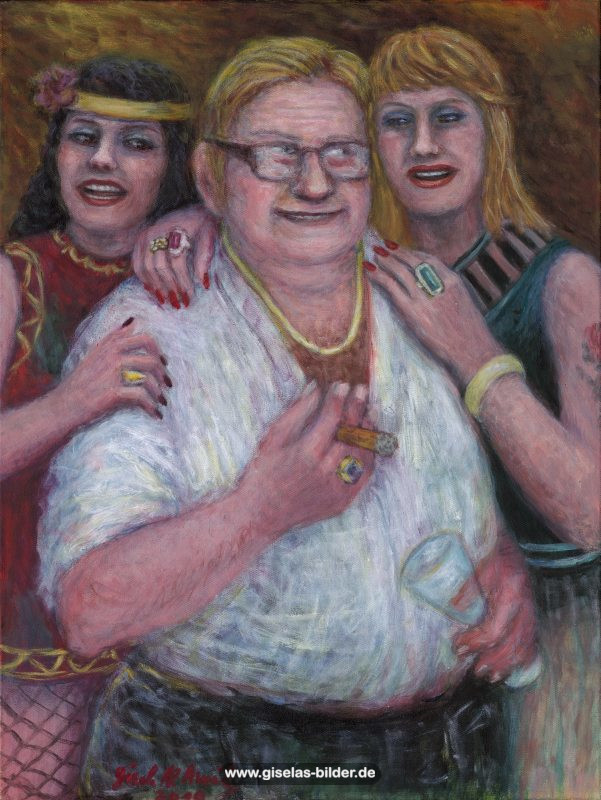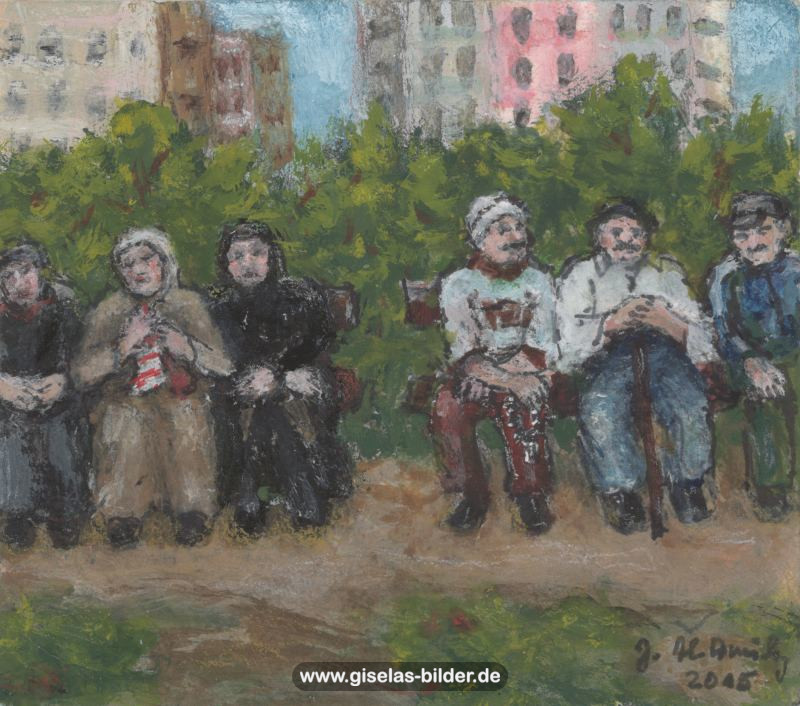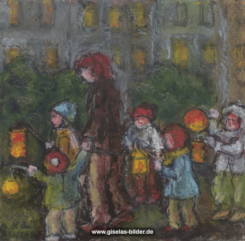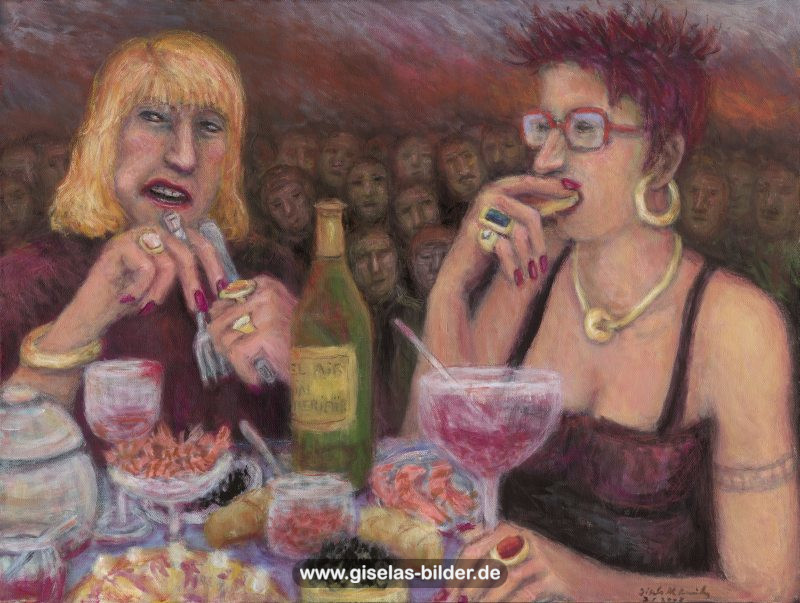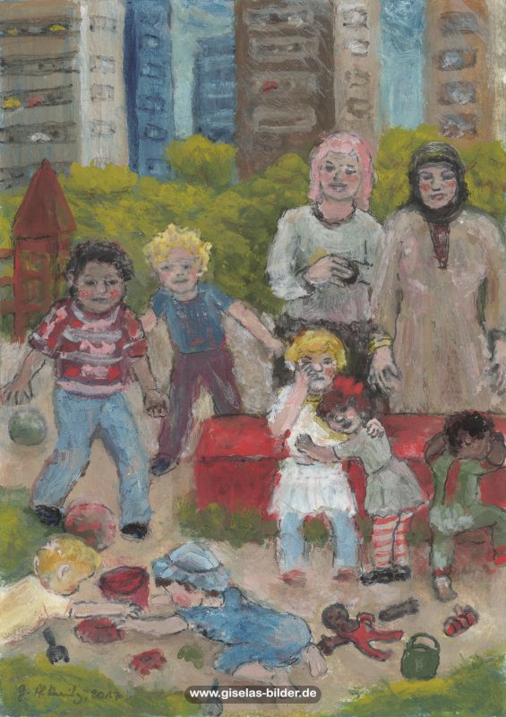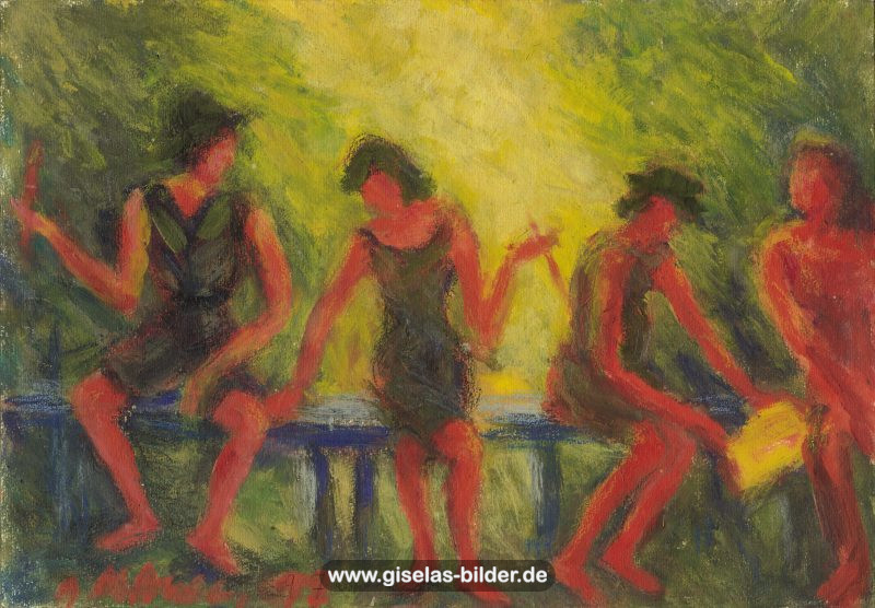 Zunächst malte sie weiterhin nur Szenen des arabischen Lebens, auch weil Freunde und Bekannte in Riad gerne noch ein Bild von ihr haben wollten. Ab 1988 malte sie kaum noch arabische Motive, sondern wandte sich anderen Themen zu. Die Bilder wurden zunehmend detailreicher, die Formate größer und die technische Ausführung raffinierter. Die erste Hamburger Schaffensperiode ist die produktivste der Malerin. Kurz vor ihrem Ende, etwa ab November 1994 legte sie den Künstlernamen "Gisèle" ab und signierte nur noch mit ihrem richtigen Namen. Eine Auswahl von Werken aus dieser Periode sehen Sie im folgenden Abschnitt.